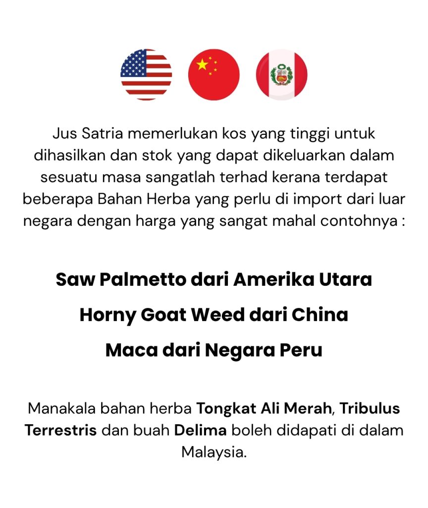 Ya, boleh. Jus Satria selamat untuk majoriti lelaki kerana ia tiada bahan kimia keras. Namun jika sedang ambil ubat hospital, ambil selang 1-2 jam dari masa ubat.