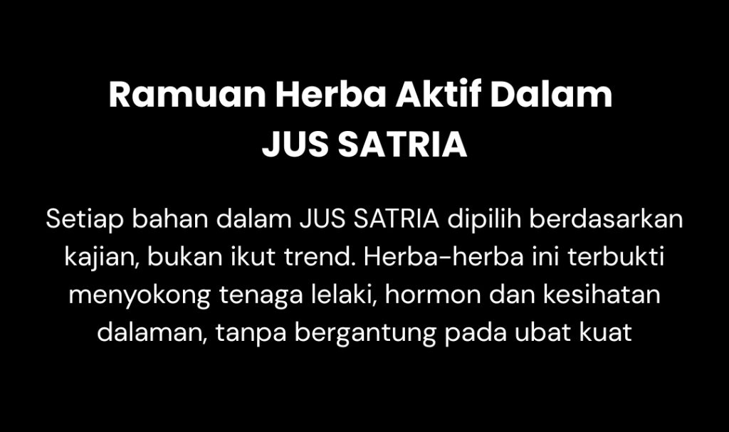 Kerana ia bukan ubat kuat segera, tetapi jus herba semula jadi yang bantu pulihkan tenaga lelaki dari akar.